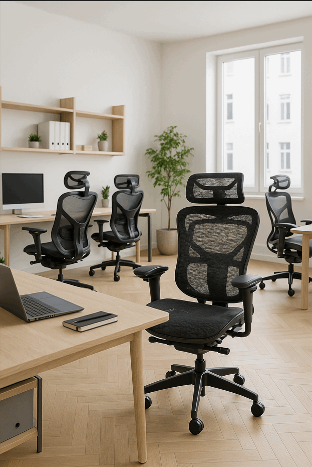Denne kontorstolen kombinerer moderne design med avansert ergonomi og høy materialkvalitet – perfekt for lange arbeidsdager på kontoret.