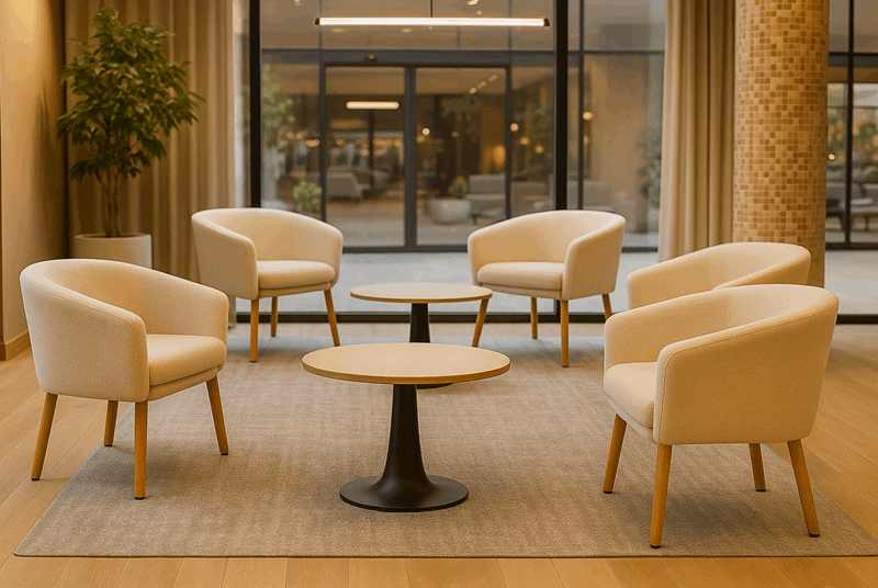 Gi kontoret, resepsjonen eller møterommet en varm og moderne følelse med loungestolen Teddy. Trukket i eksklusiv bouclé – kjent for sin myke, lune tekstur – skaper Teddy et innbydende uttrykk som passer perfekt i profesjonelle miljøer som venterom, kontorlandskap og møterom.