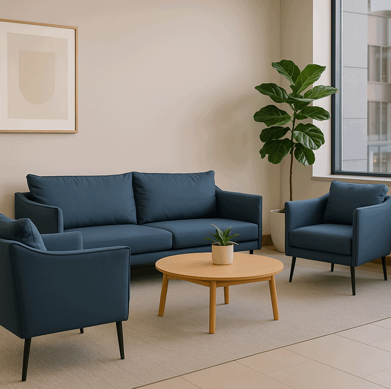 Nordic Blue er en stilren og komfortabel lenestol designet for moderne kontormiljøer. Den passer perfekt sammen med sofaen i samme serie, og gir et helhetlig og profesjonelt uttrykk i resepsjonsområder, venterom, møterom eller sosiale soner.