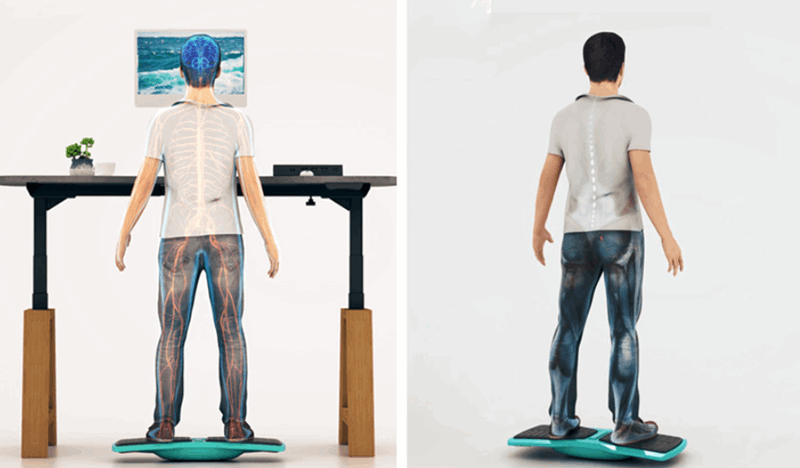 Balance ståbrett-fotskammel kan brukes både som ståbrett for en aktiv arbeidsstilling og som fotstøtte når du sitter.