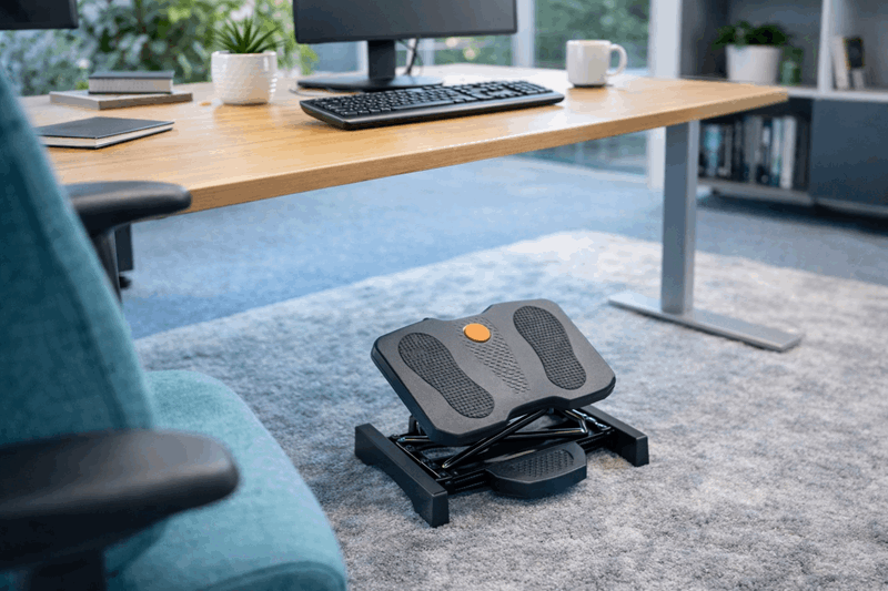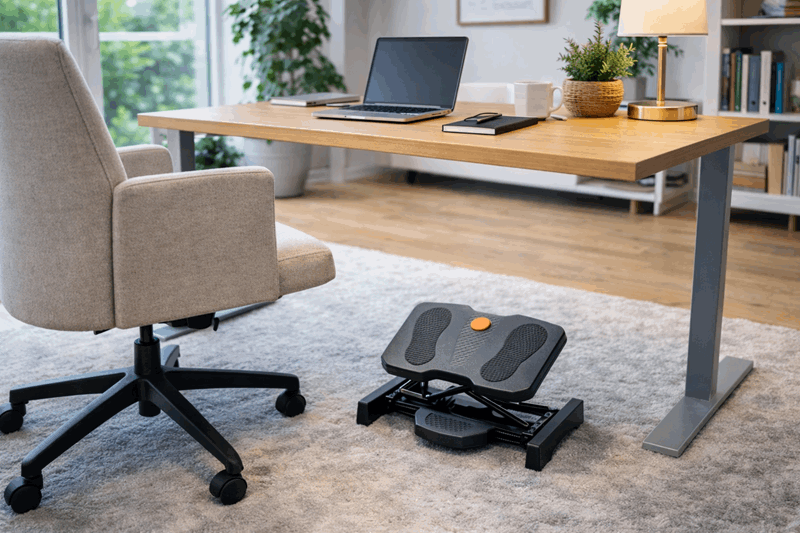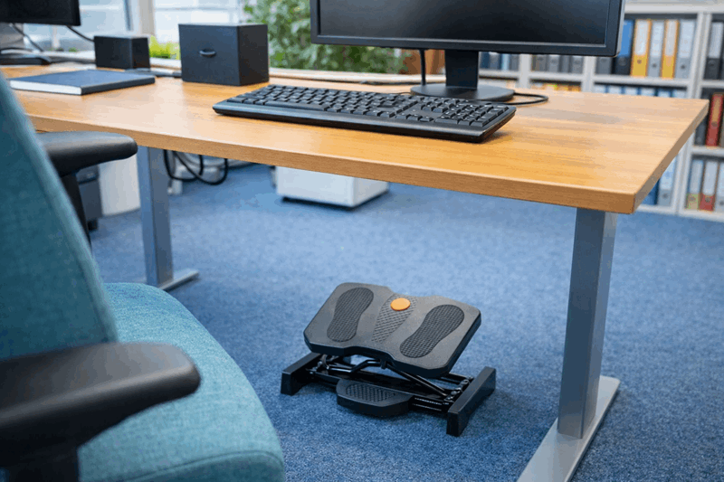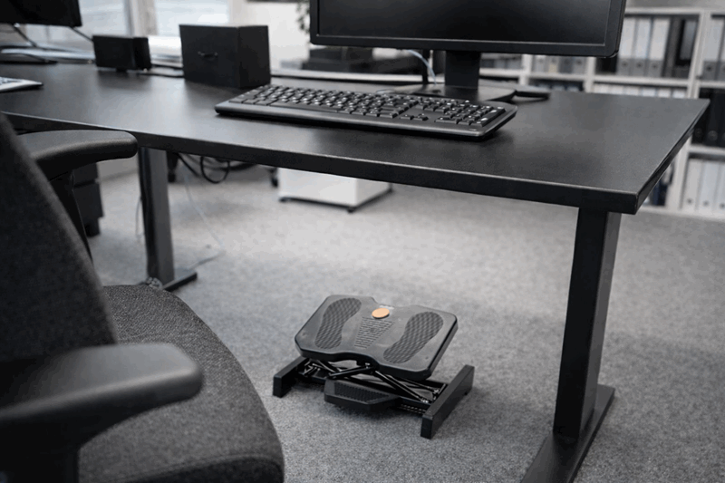 Forbedre komforten og arbeidsstillingen din med denne ergonomiske og robuste fotstøtten. Den reduserer belastningen på føtter og ben mens du sitter og jobber ved skrivebordet.