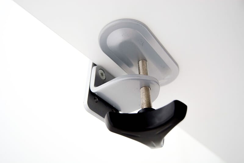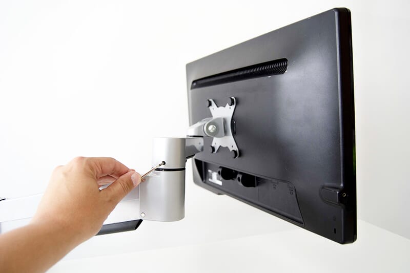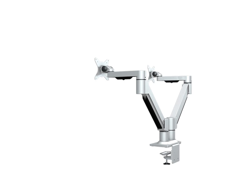 Monitorarmen kommer med både klemmefeste og gjennomgående feste, noe som gjør det fleksibelt å plassere skjermen på bordet. Alle ledd på armen er utstyrt med settskruer slik at skjermen kan låses i fast posisjon.