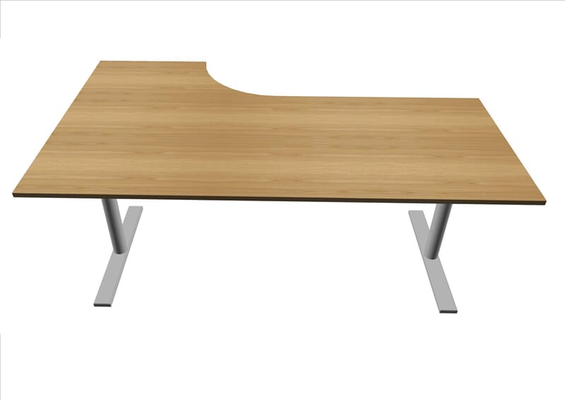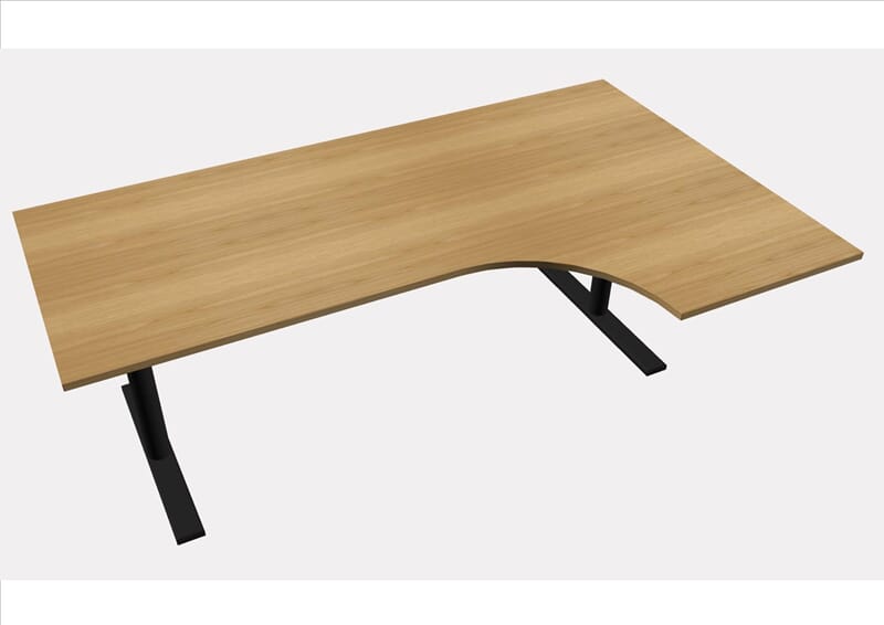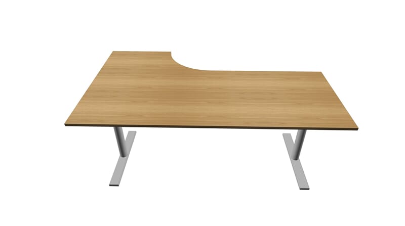 E-Motion elektrisk hev-senk understell i alufarget utførelse med kombiplate 180x120/60 cm. Høyderegulerbart fra 67-117 cm. Plate i bøk, bjerk eller hvit laminat.